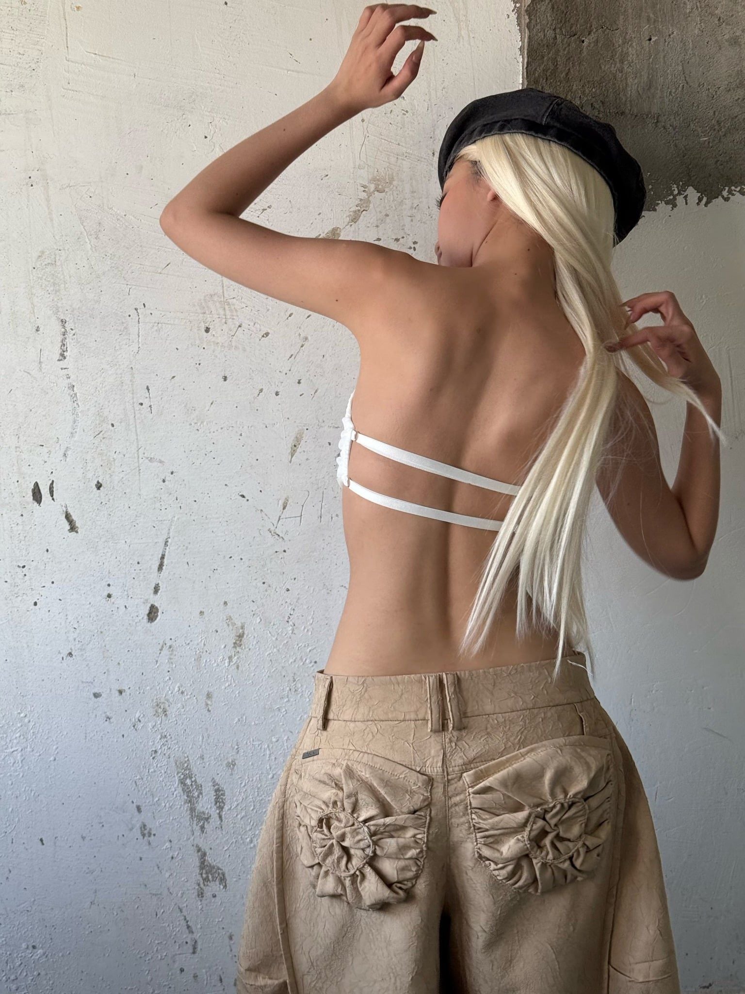 SKU:aerisbra1- Chất liệu: lưới trắng xếp tỉ mỉ, lớp lót satin cao cấp, có dây tăng đơ điều chỉnh phía sau.