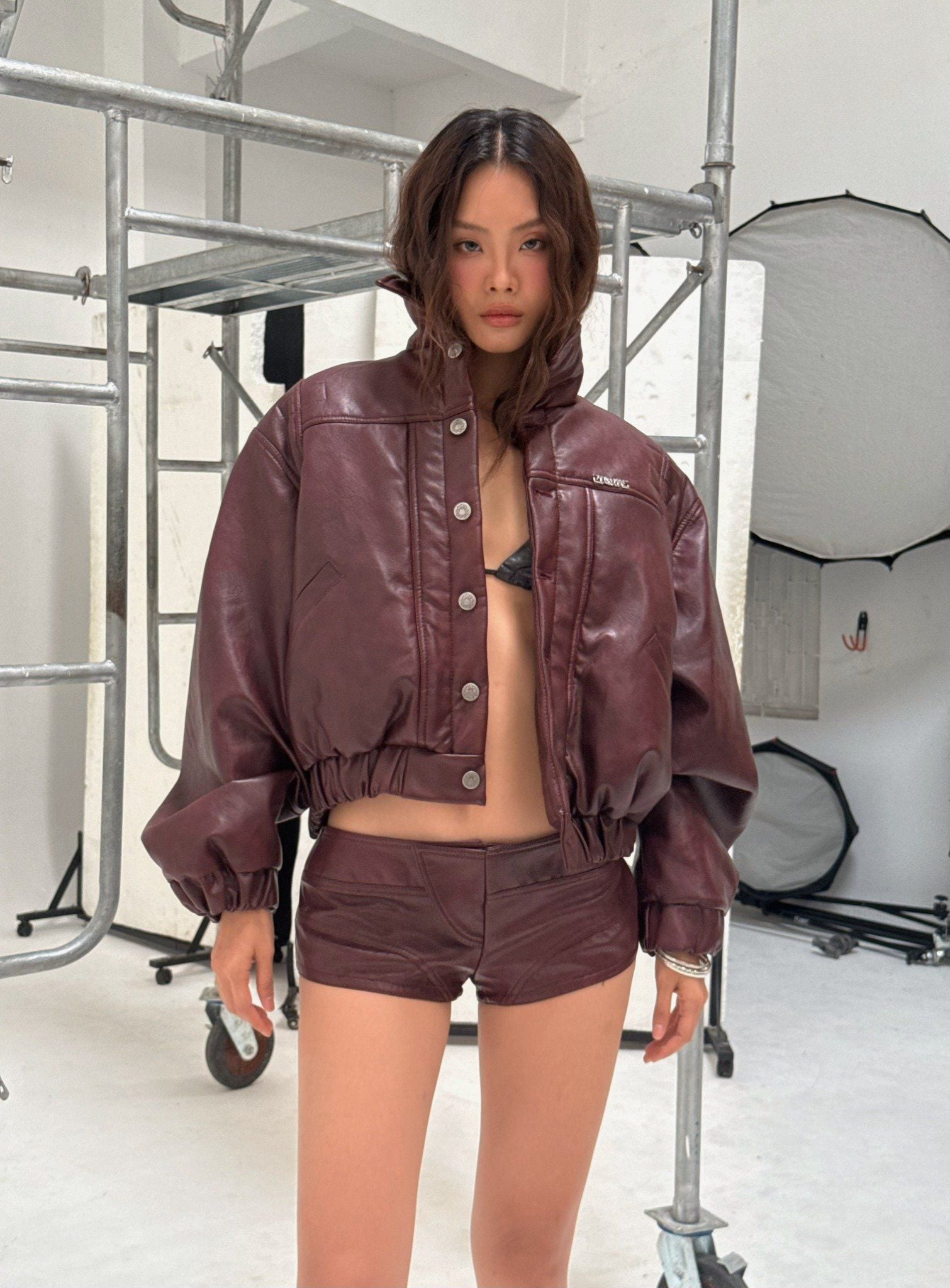 TSUN Lexon Leather Effect Jacket Red Wine - Áo Khoác Hiệu Ứng Da Lexon Đỏ Rượu