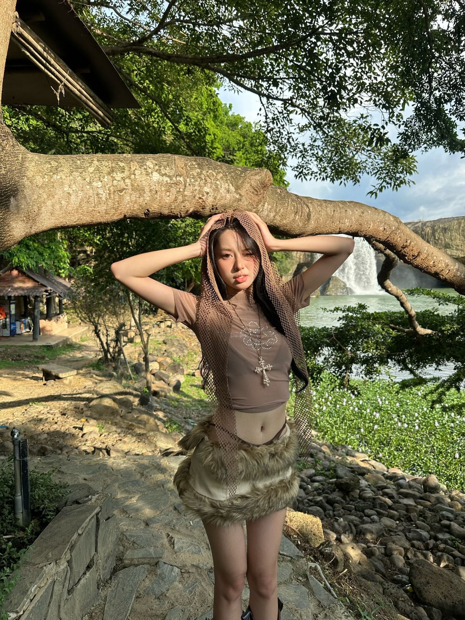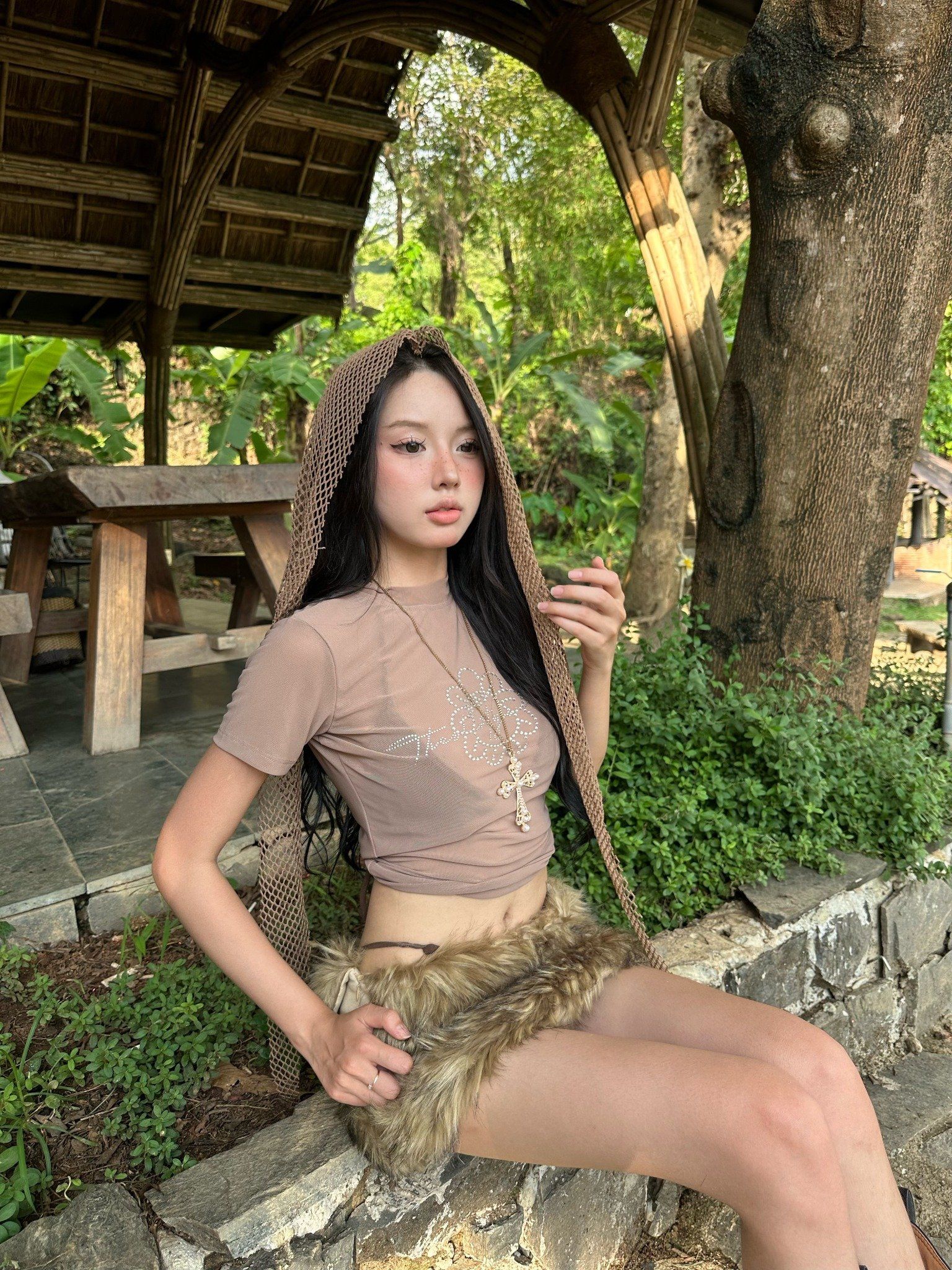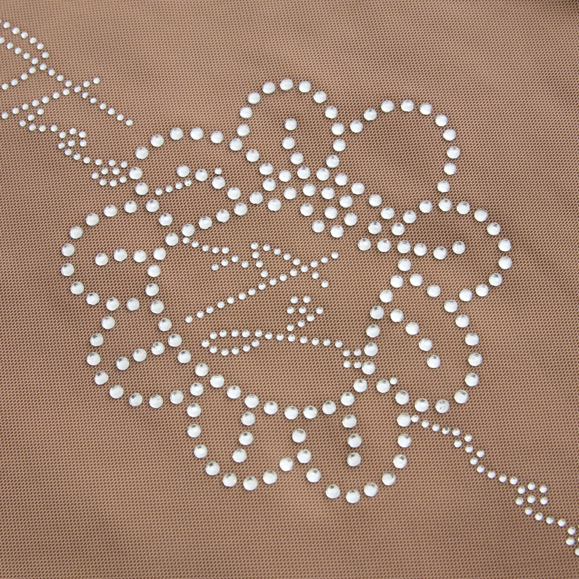 Chất vải lưới xuyên thấu thoáng mát, có độ co giãn tốt. Họa tiết đính đá có độ bắt sáng cao. Thiết kế tôn dáng, gợi cảm.