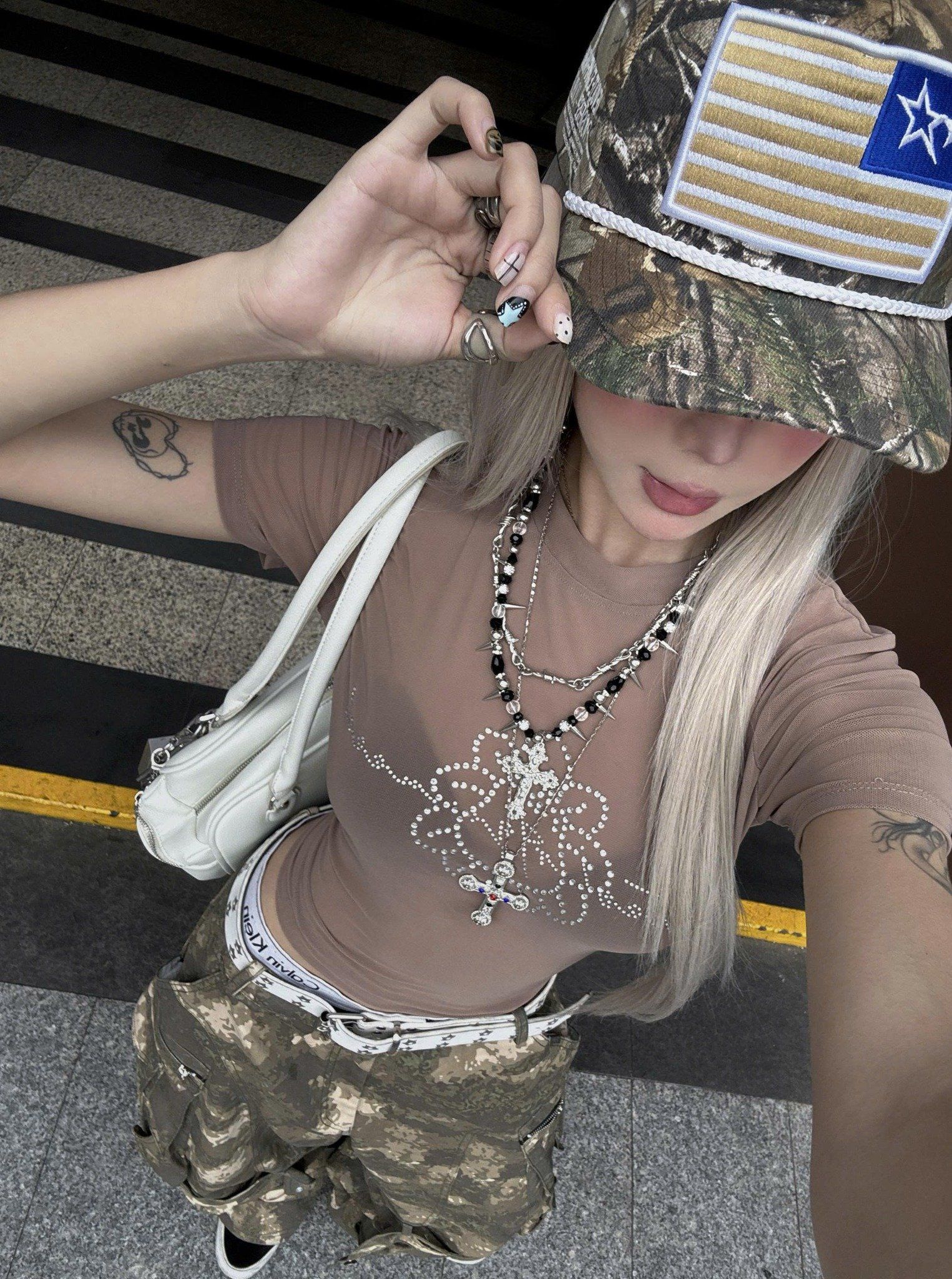 TSUN Áo Lưới Xuyên Thấu Đính Đá - Woo Logo See-Through Tee