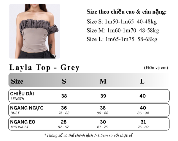 TSUN Layla Top Grey - Áo Ống Cúp Ngực Kiểu Viền Bèo Xám