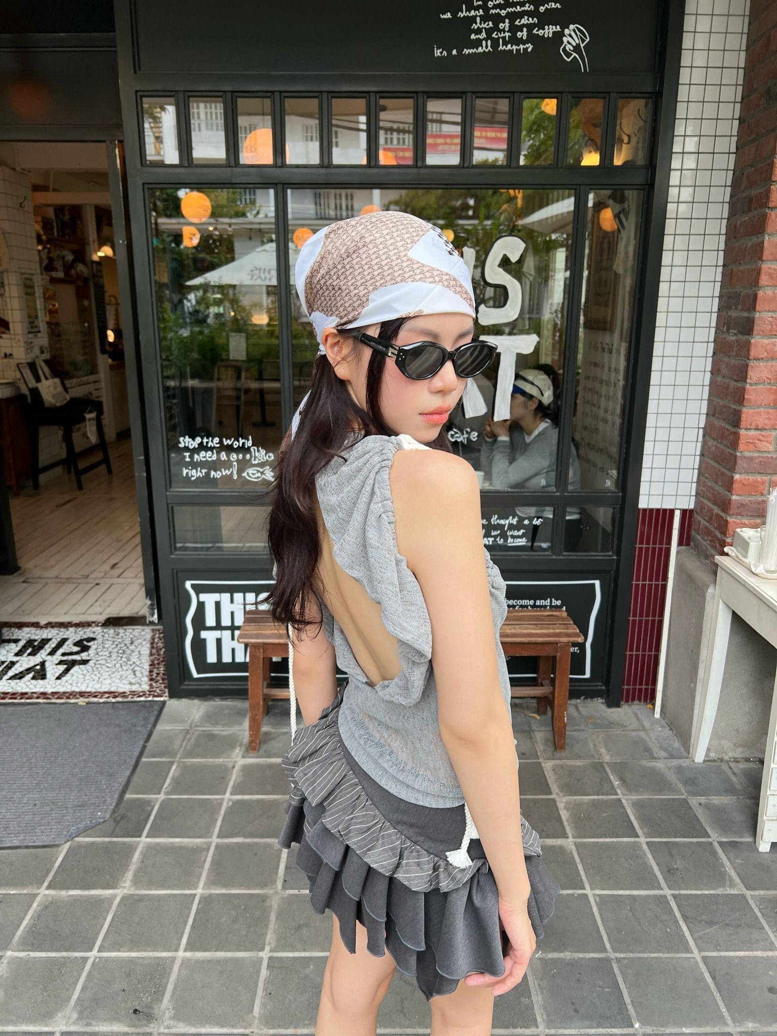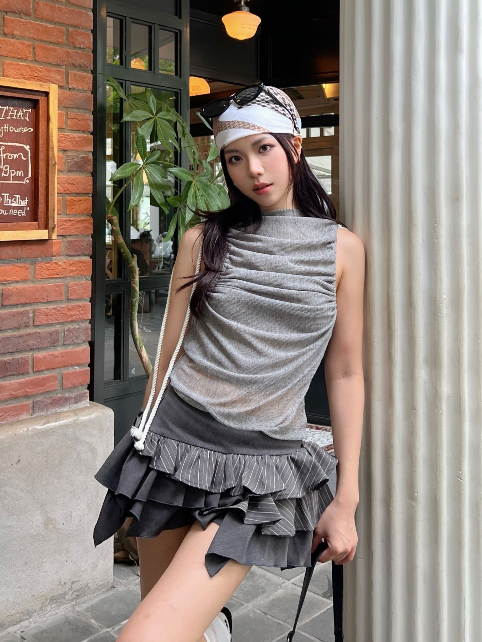 TSUN Ashlyn Top Grey - Áo Thun Lưới Kiểu Sát Nách Hở Lưng