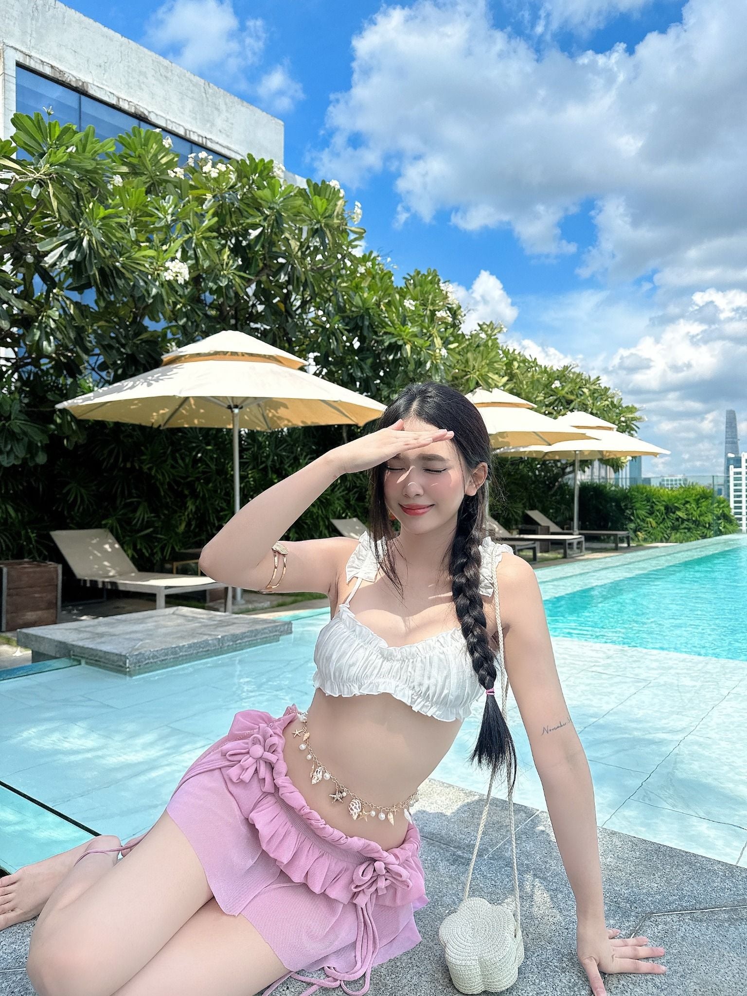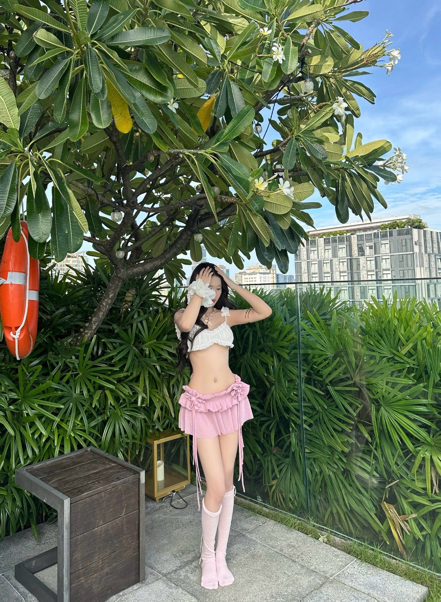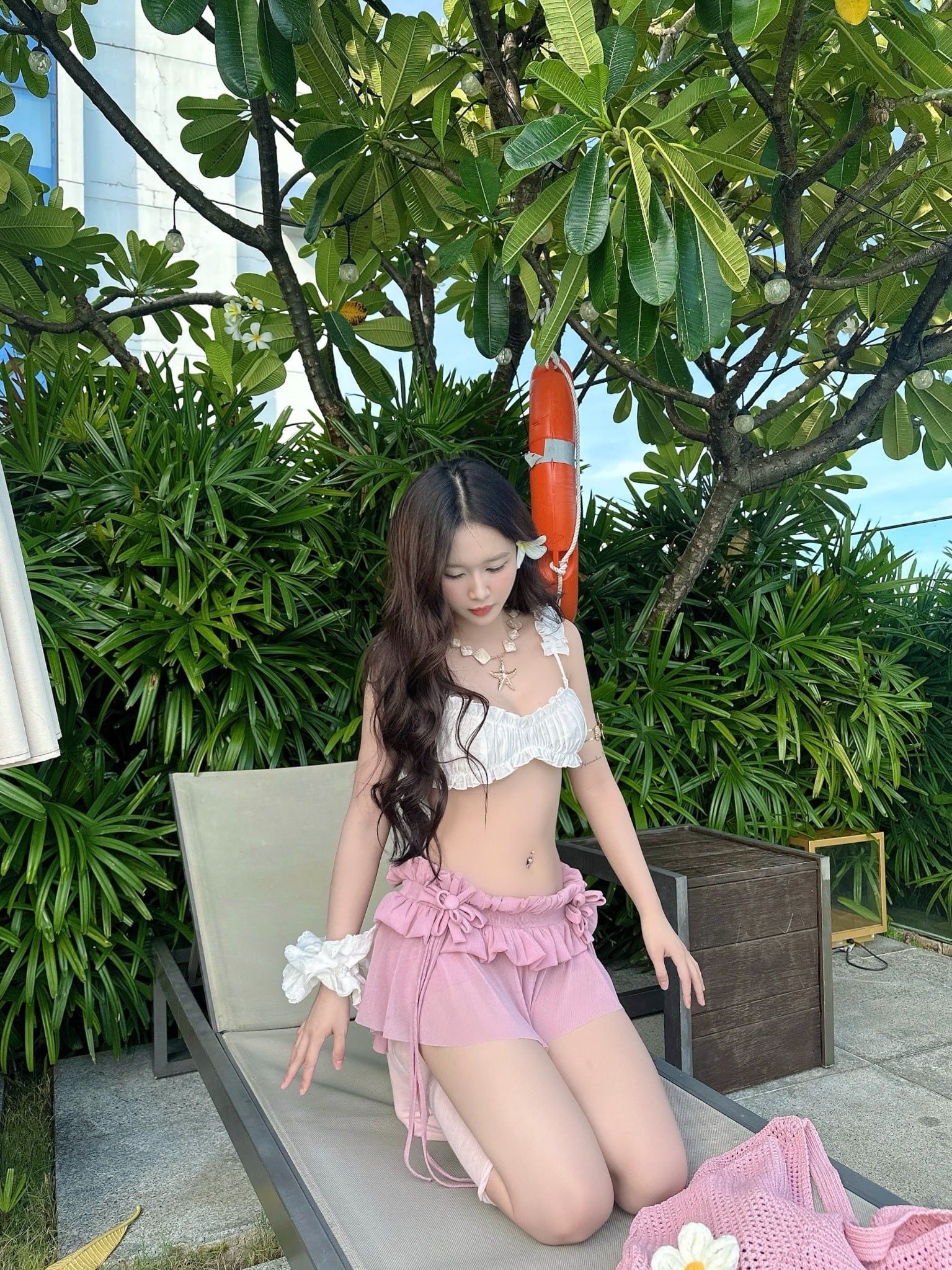 - Thiết kế dành cho mùa hè nổi bật. Vải thun lưới kim tuyến lạ mắt, phần hoa được kết thủ công được thiết kế độc quyền bởi TSUN. Có quần bảo hộ.