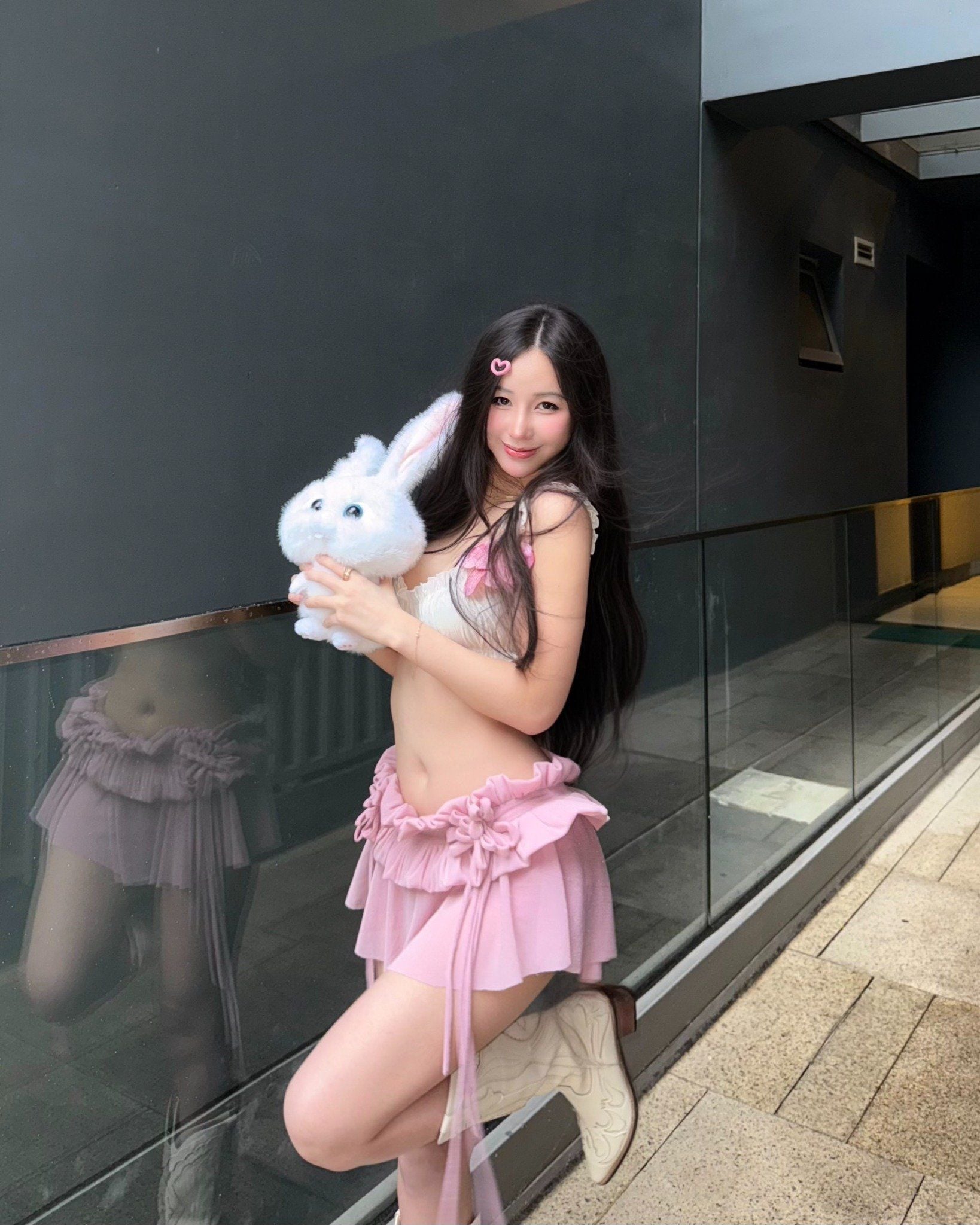 TSUN Mauve Mini Skirt - Chân Váy Ngắn Xoè Thun Lưới Hồng