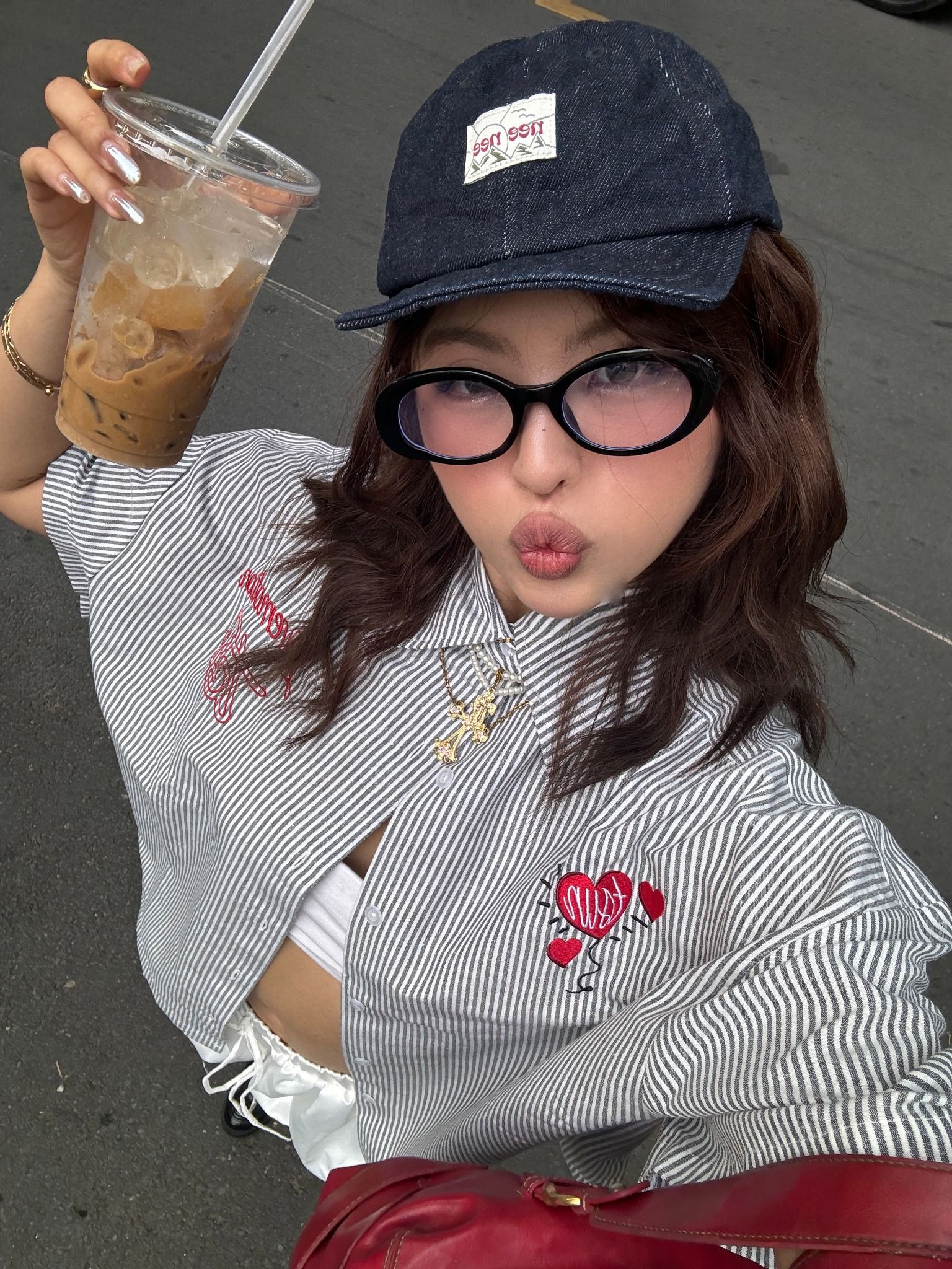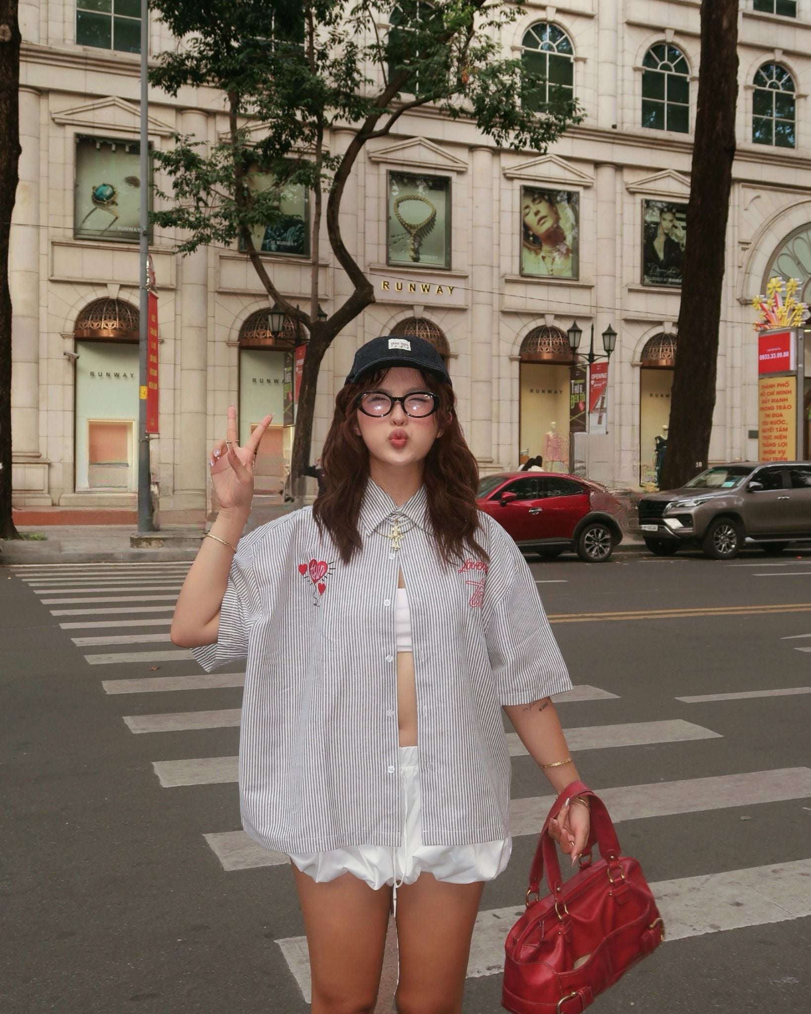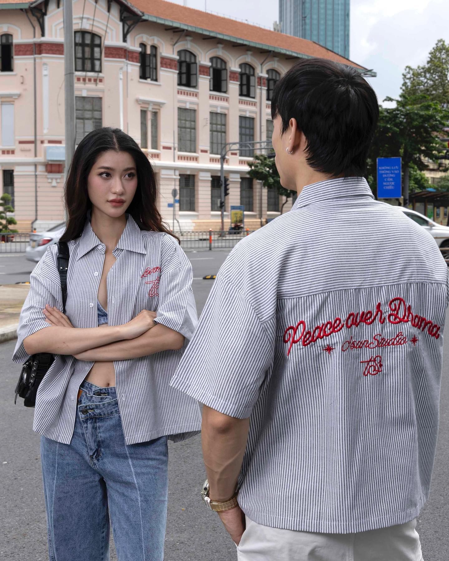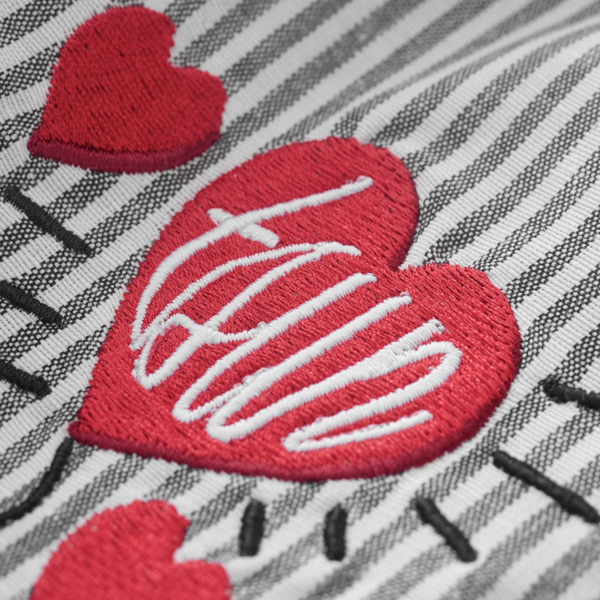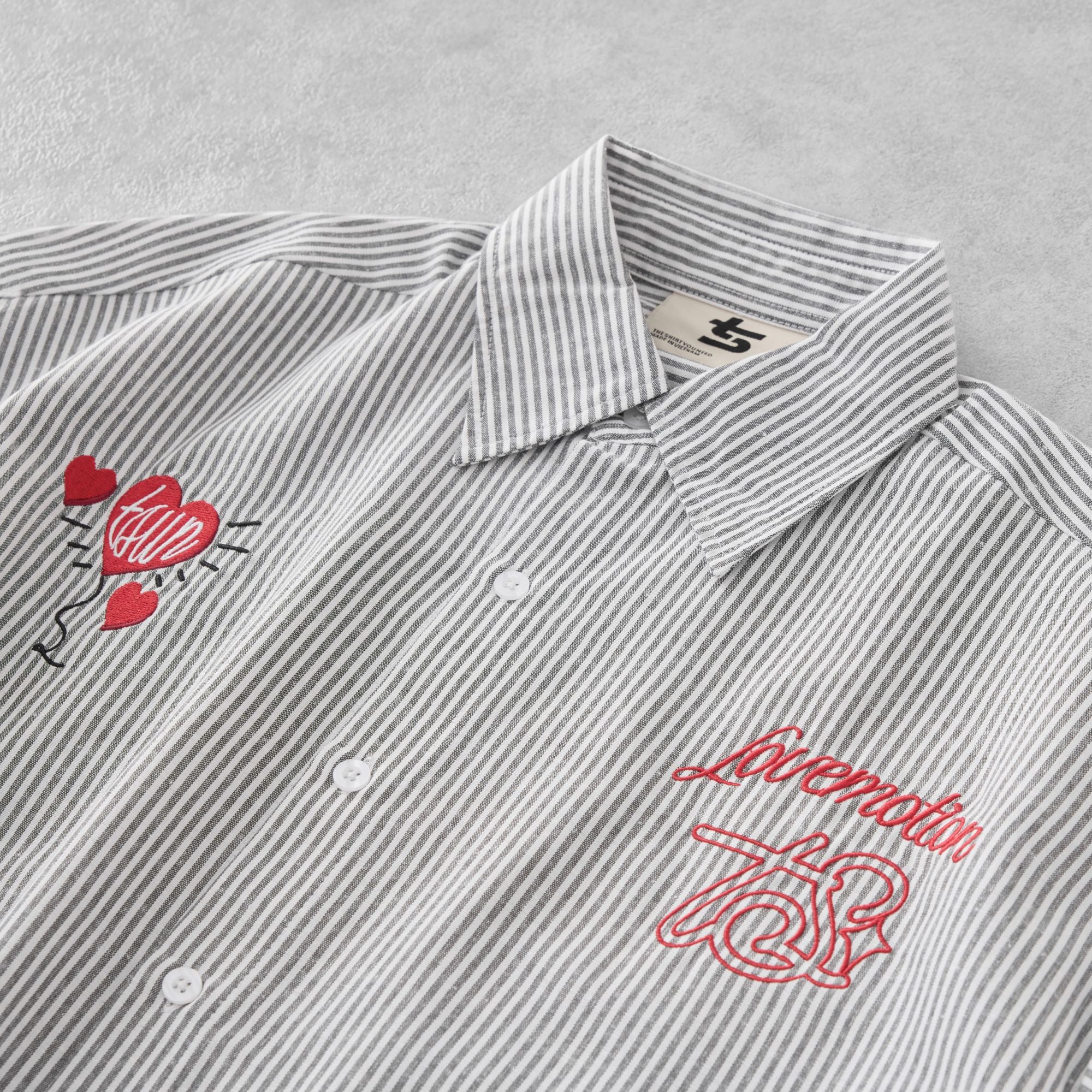 TSUN Áo Sơ Mi Thêu Trái Tim Sọc Trắng Đen - Lovemotion Shirt - Black