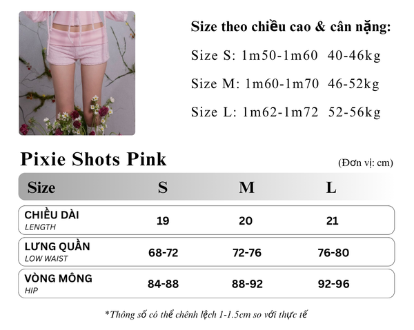SKU:pixieshort1Sản phẩm được may 2 lớp vải nỉ, sắc hồng trendy trẻ trung. Logo thêu tỉ mỉ, sắc nét.