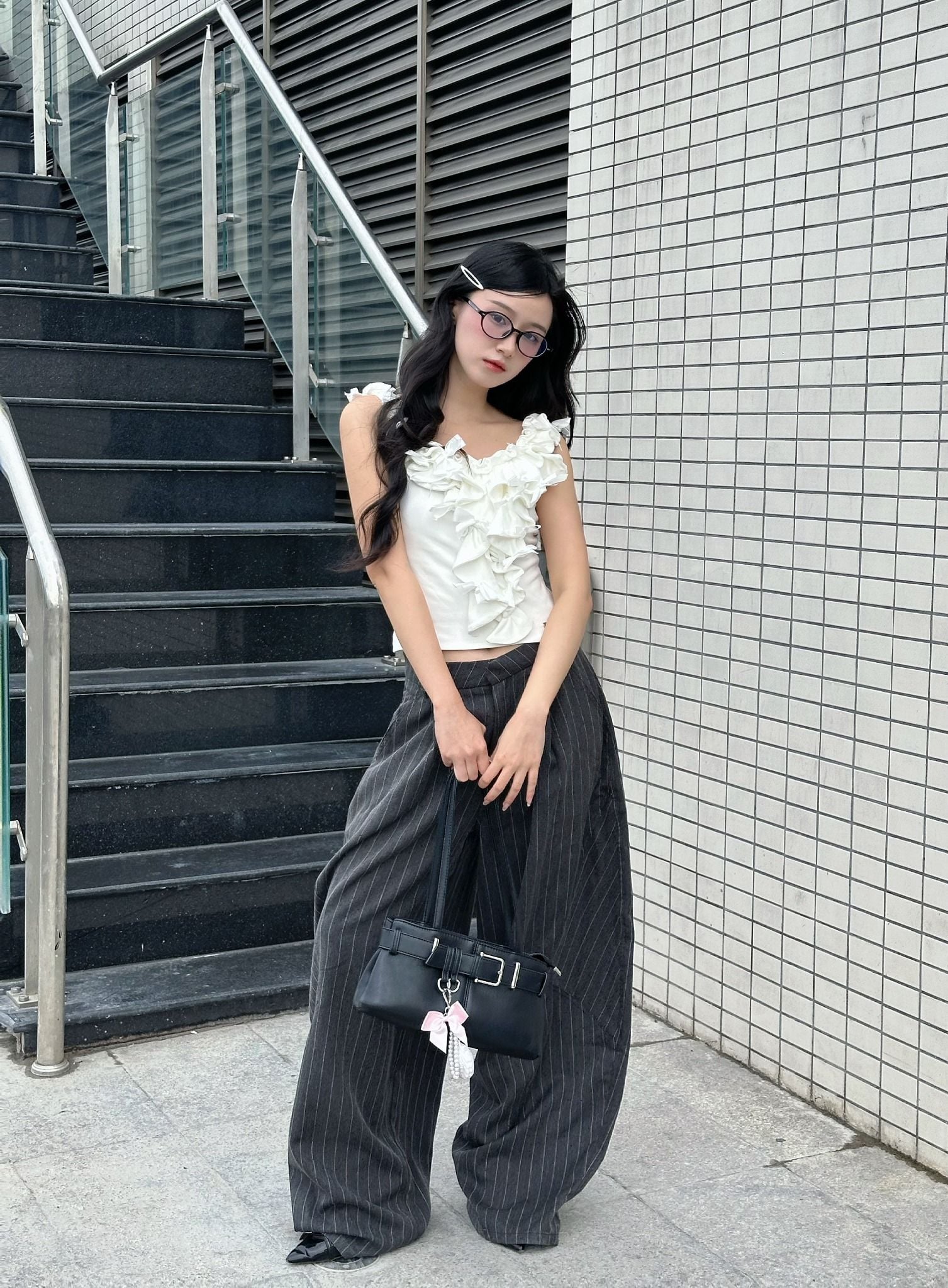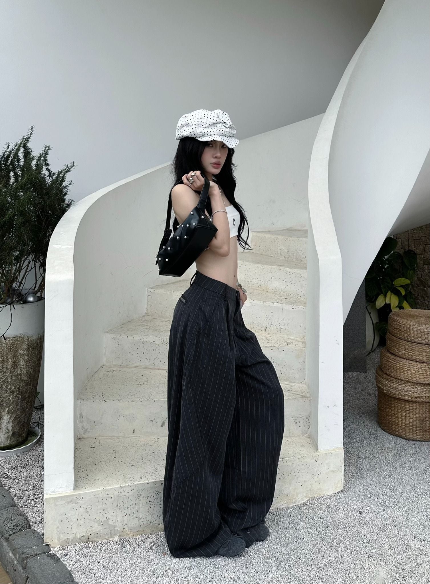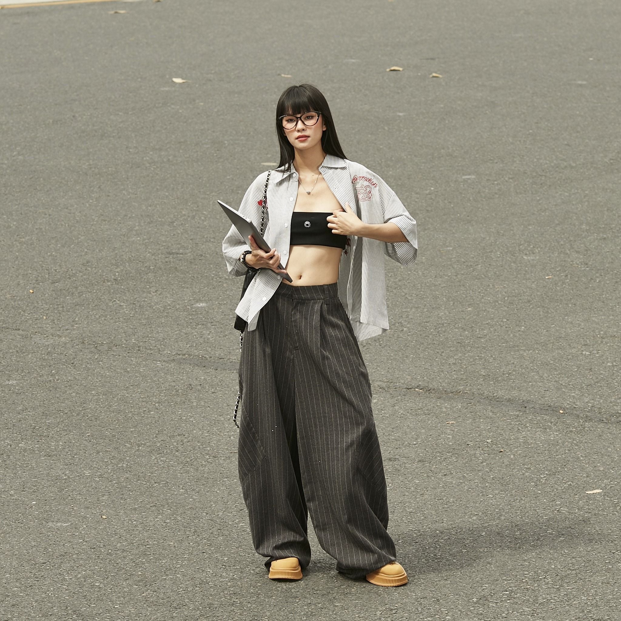 TSUN Rhinestones Wide Pleated Pants - Grey - Quần Tây Dáng Rộng Đính Đá