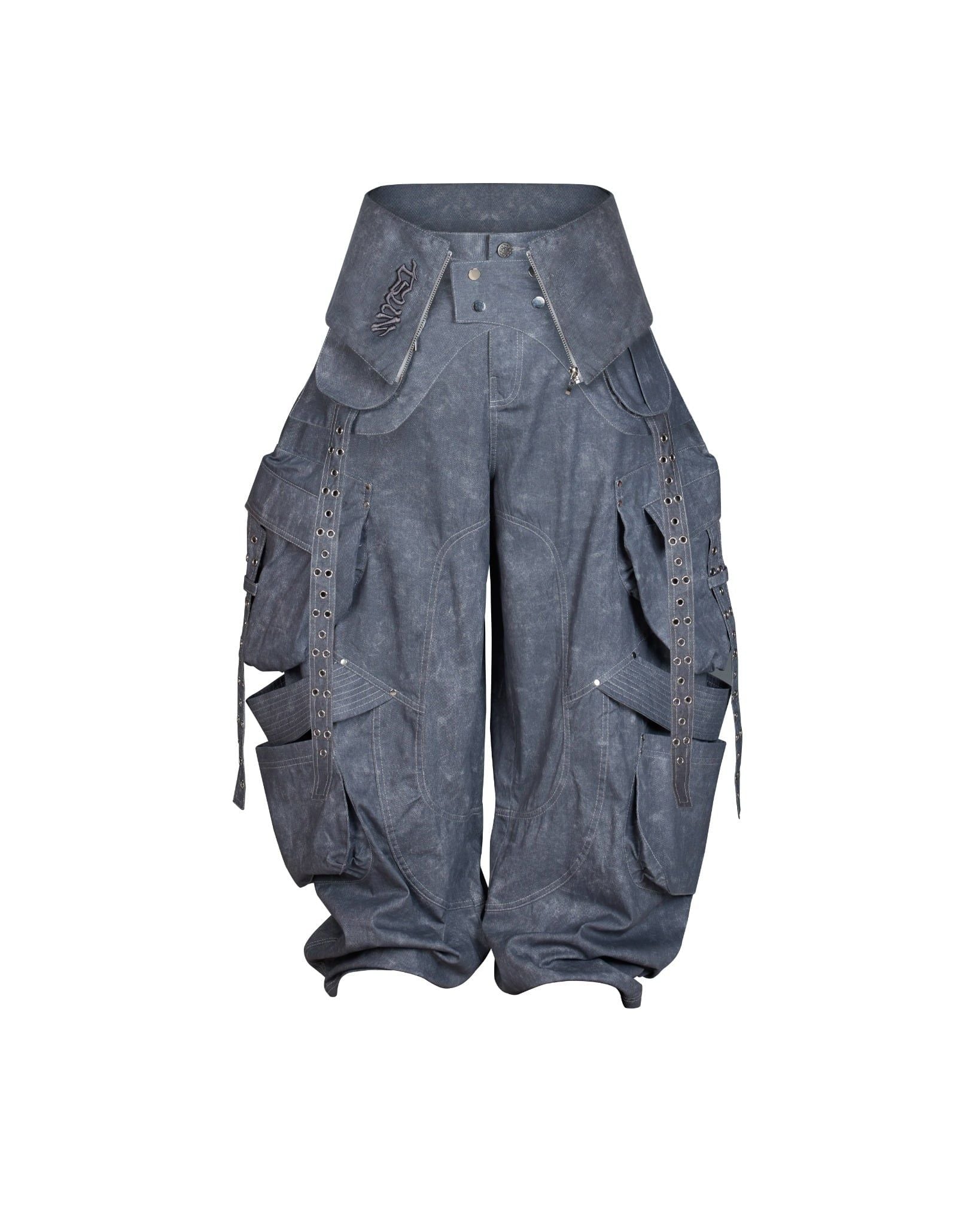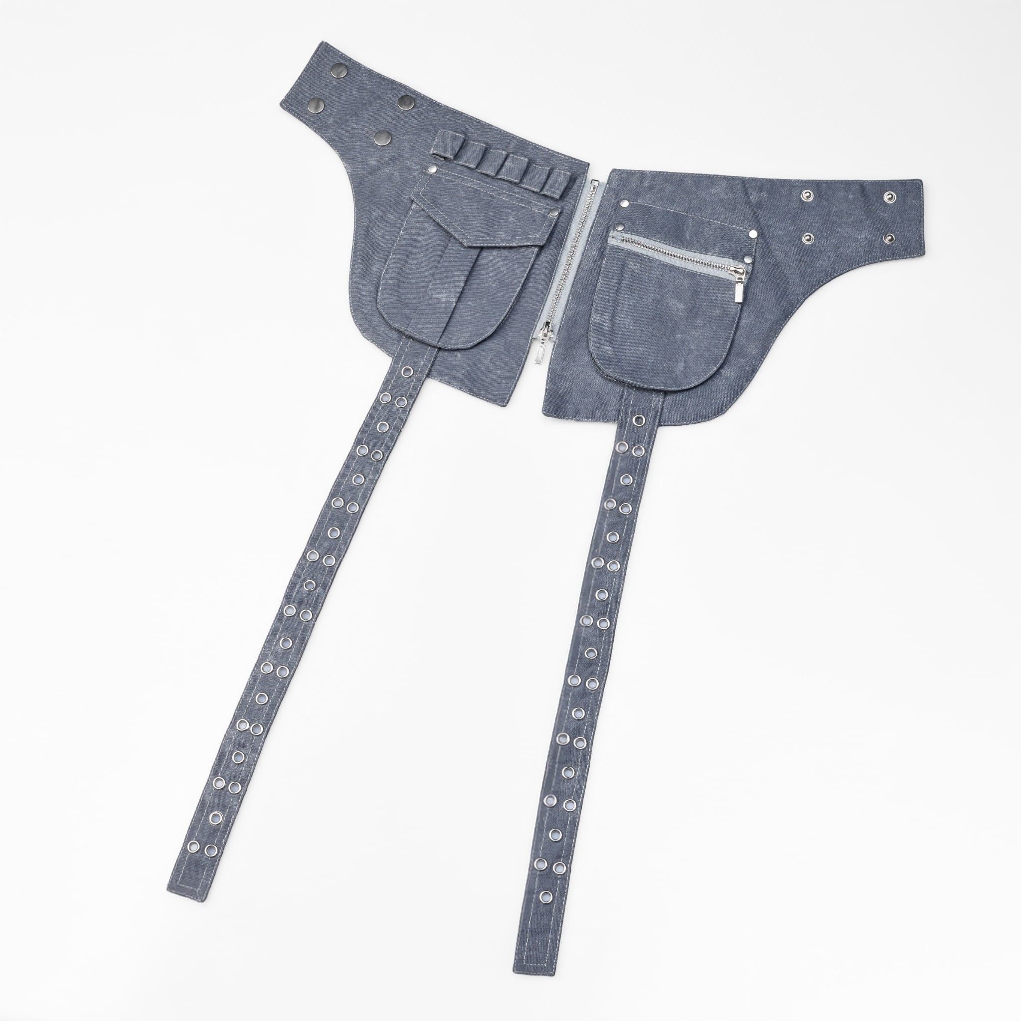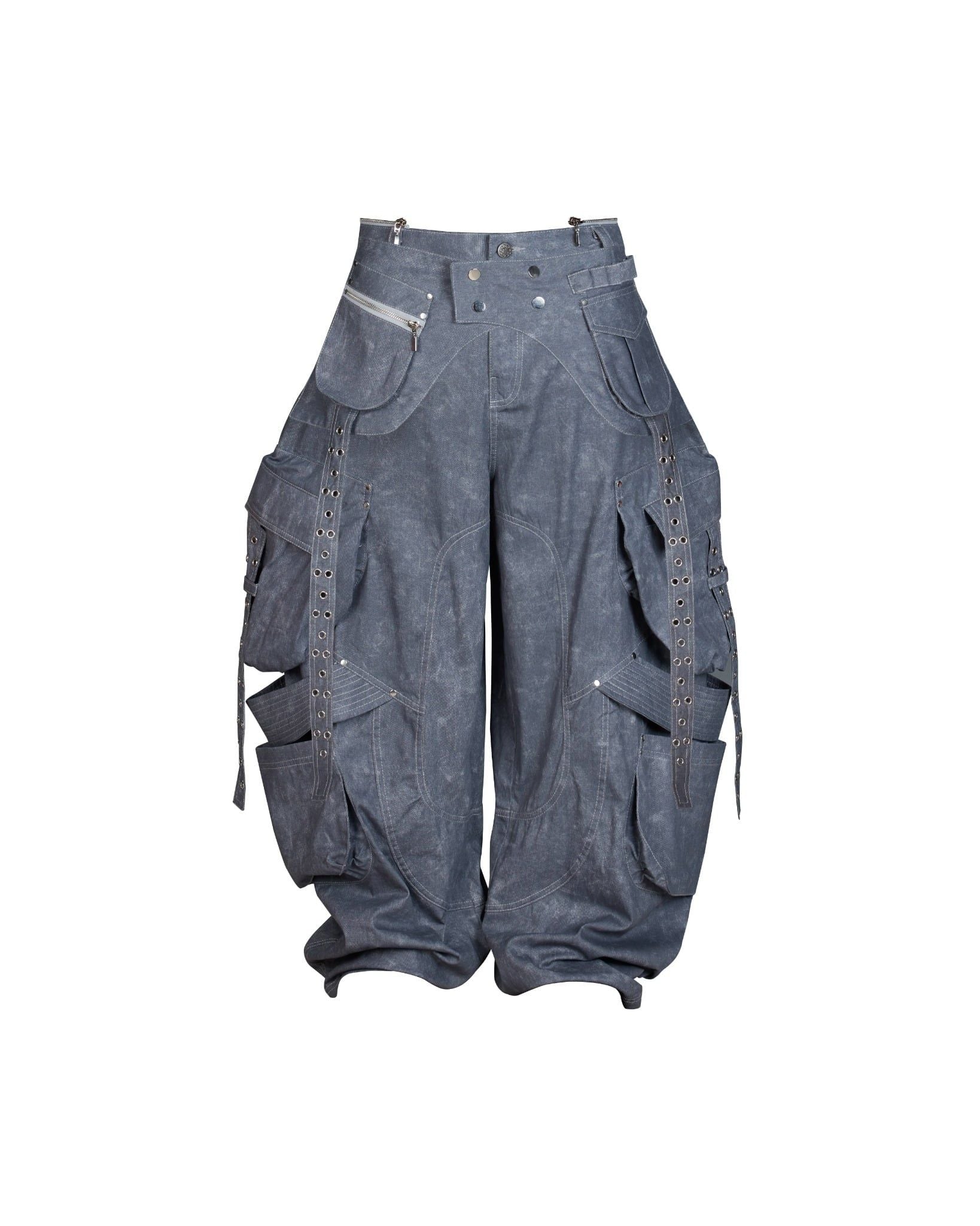 Sử dụng nhiều chất liệu kim loại để làm nổi bật chiếc quần. Đai lưng có thể tháo rời, có ít nhất 3 kiểu phối.