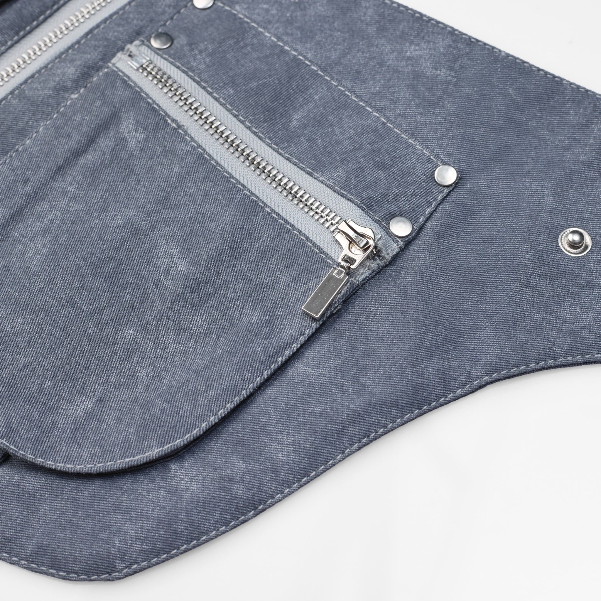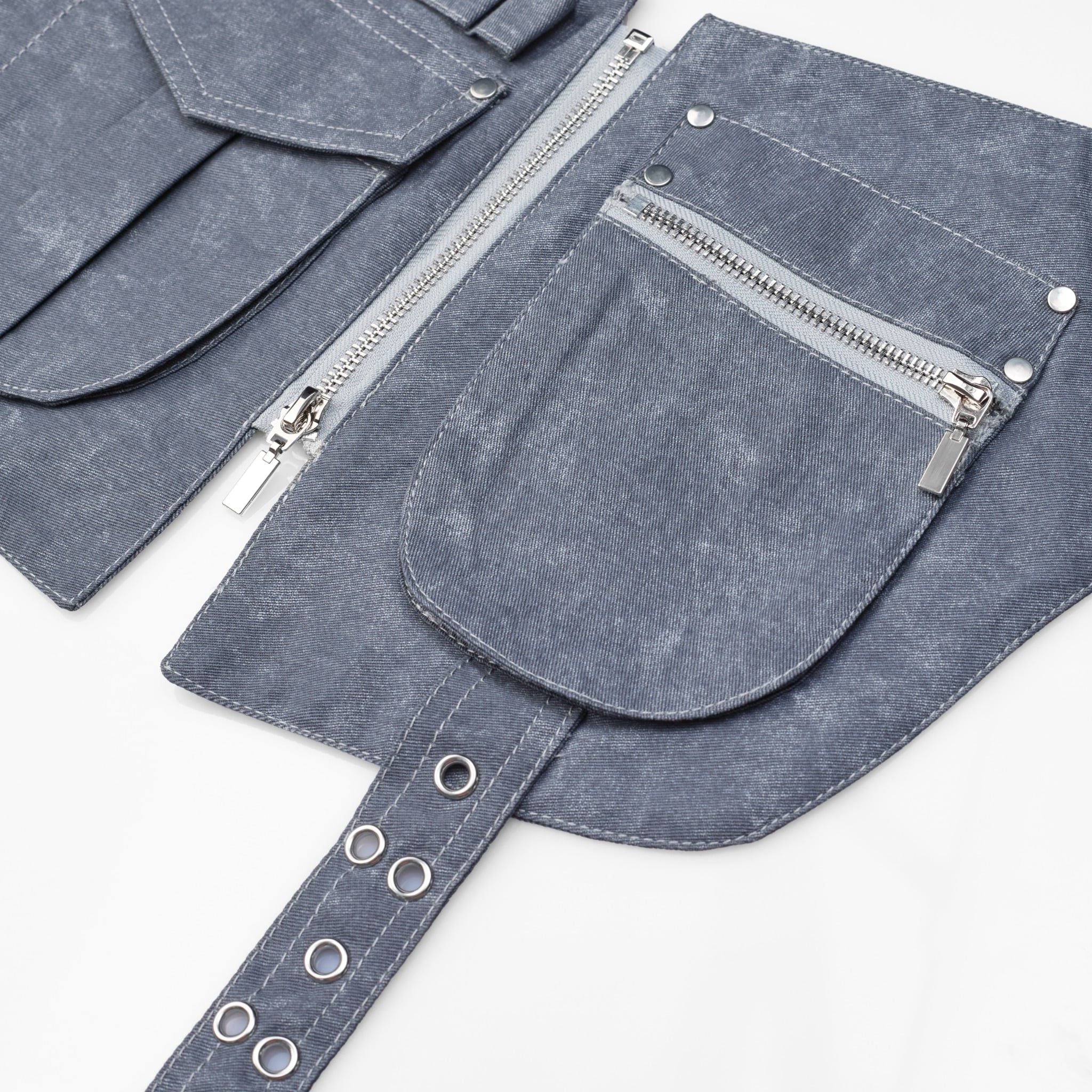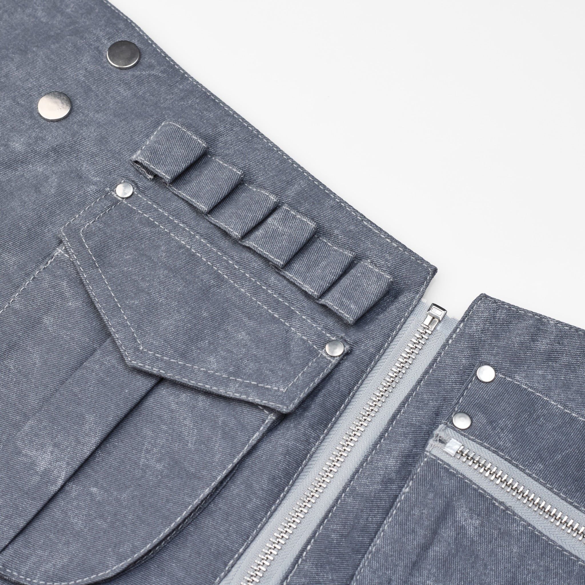 Sử dụng nhiều chất liệu kim loại để làm nổi bật chiếc quần. Đai lưng có thể tháo rời, có ít nhất 3 kiểu phối.