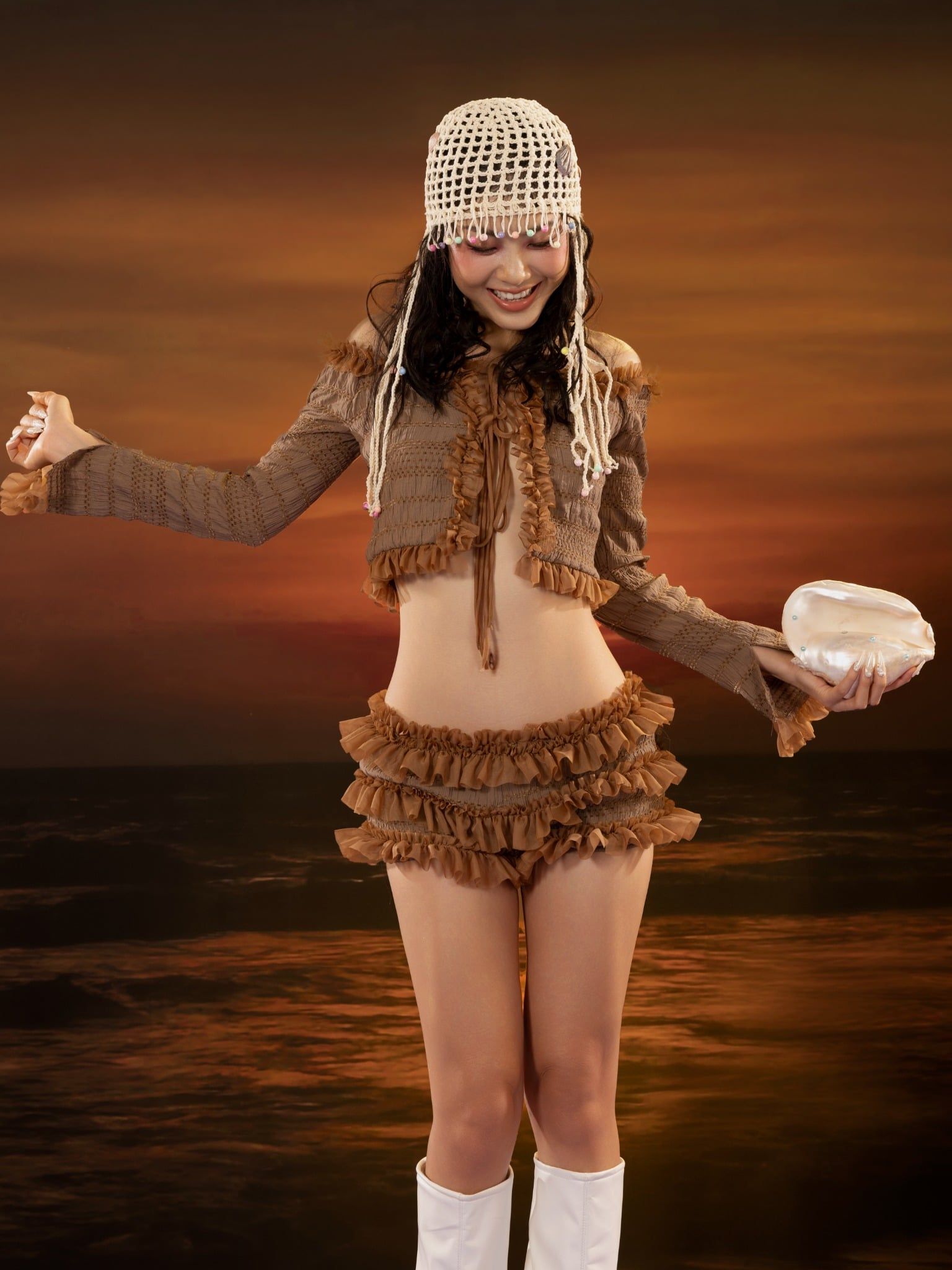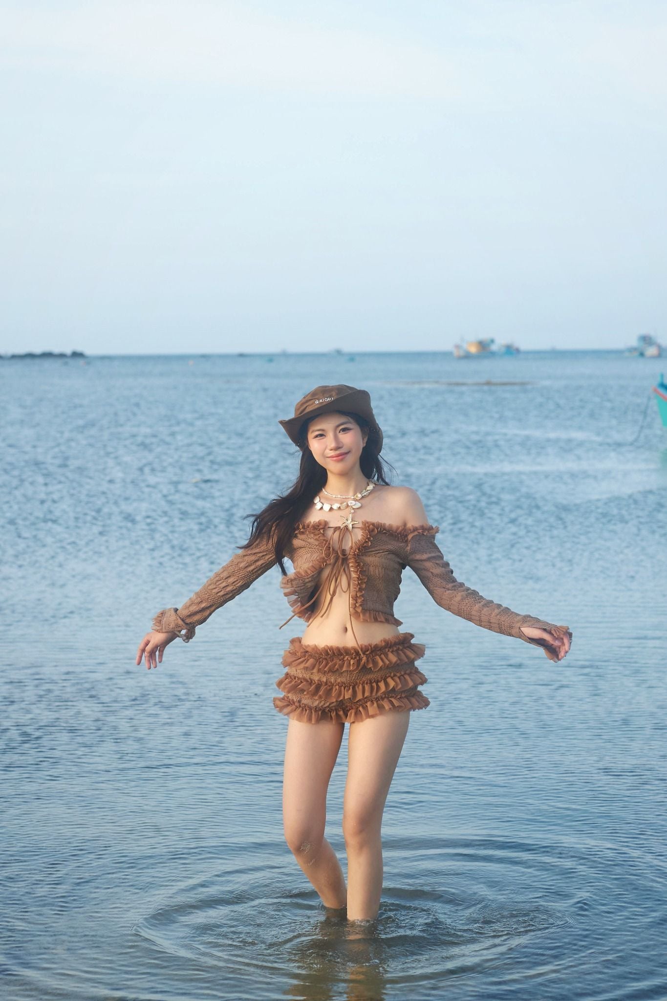 TSUN Set Bèo Nhún Nâu Tay Dài - Cinnamon Charm Set